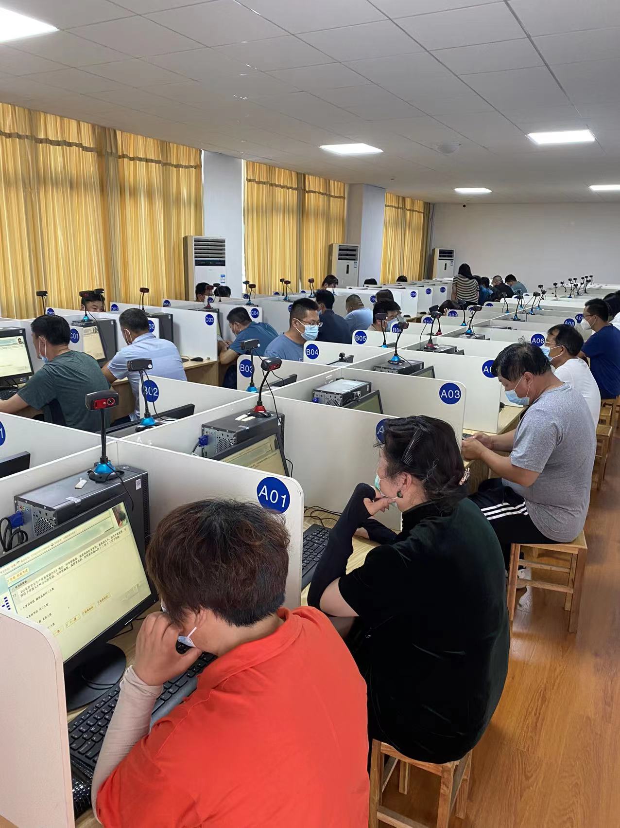 我司領(lǐng)導(dǎo)高度重視,開會部署由培訓(xùn)部制定考試方案,考試流程、嚴(yán)格按照要求做好疫情防控措施,門衛(wèi)安排專人進(jìn)行檢查,掃碼、測試體溫、登記后進(jìn)入考場,考試按照人員數(shù)量分時間段、分批次進(jìn)行,實行電腦取號叫號,并安排專人對考試人員身份進(jìn)行核實,電腦上機(jī)考試,每臺電腦攝像頭全部開放,試題隨機(jī),嚴(yán)格按照要求進(jìn)行。